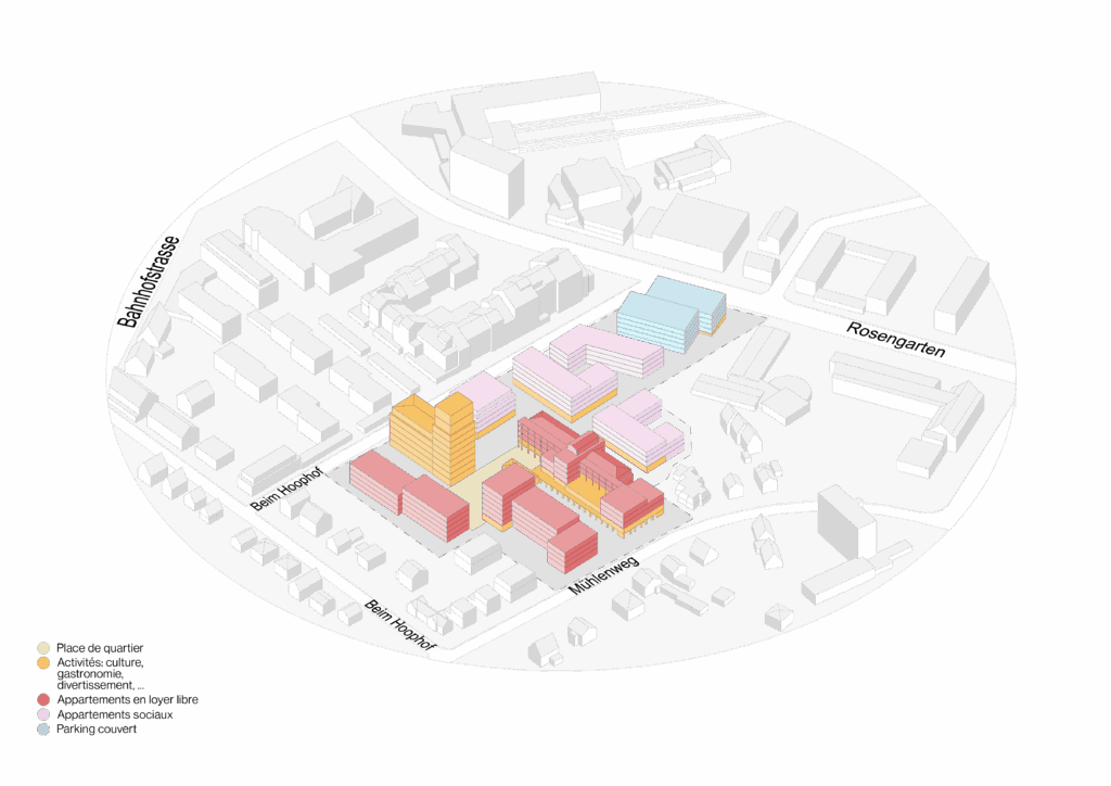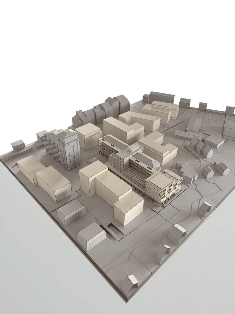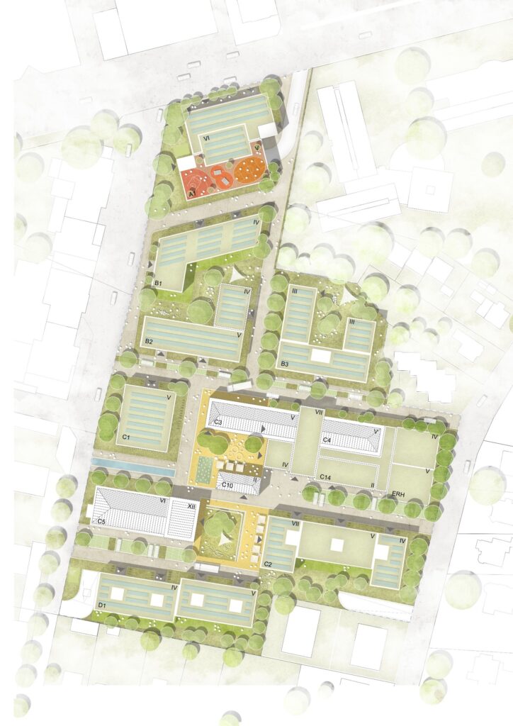 Les points forts du site et sa substance patrimoniale mènent à l’intuition qui faut définir le cœur du quartier et tisser ses connexions avec le voisinage. Le projet poursuit une vision ambitieuse de densification qui redéfinira la notion d’urbanité et de centralité.